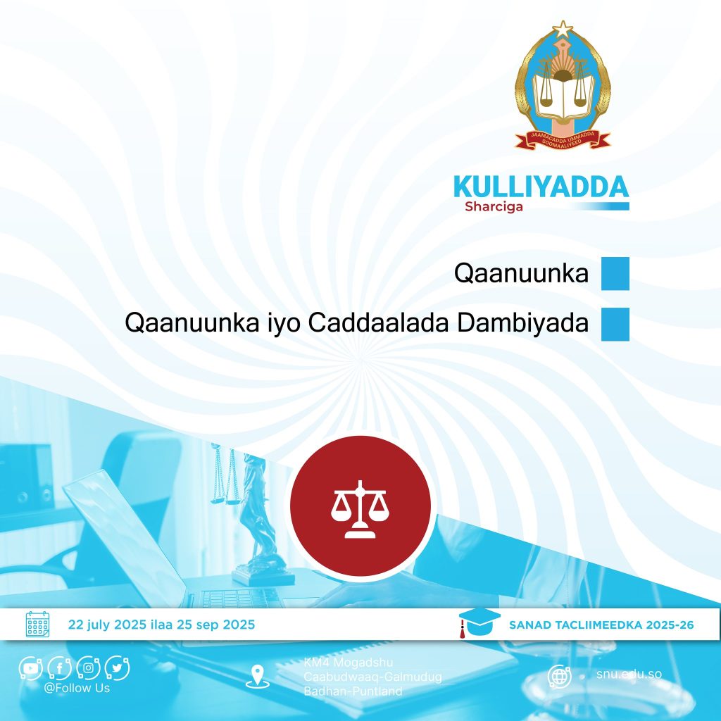 2- Waaxda Qaanuunka iyo caddaalada Dambiyada (Department of Law and Criminal Justice)